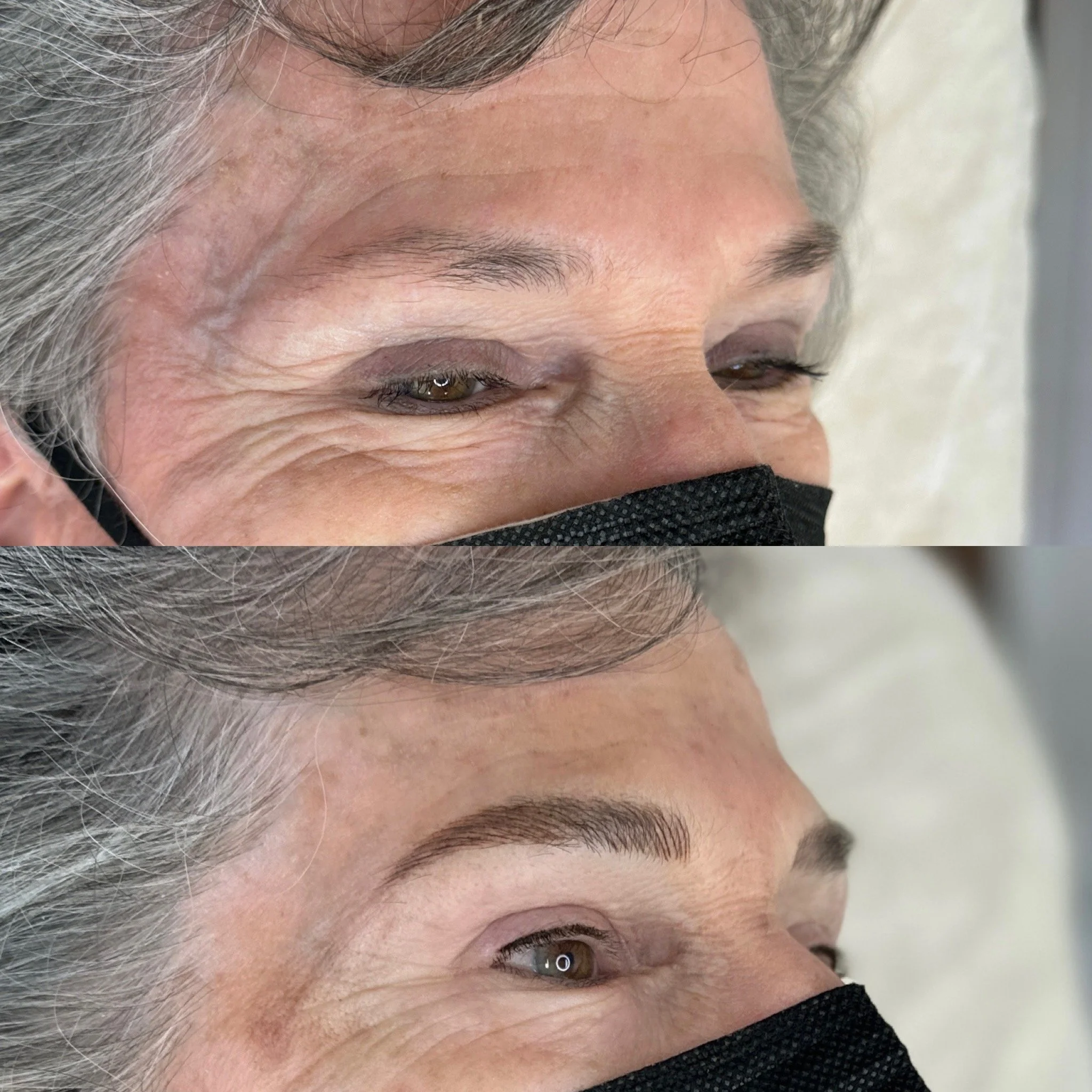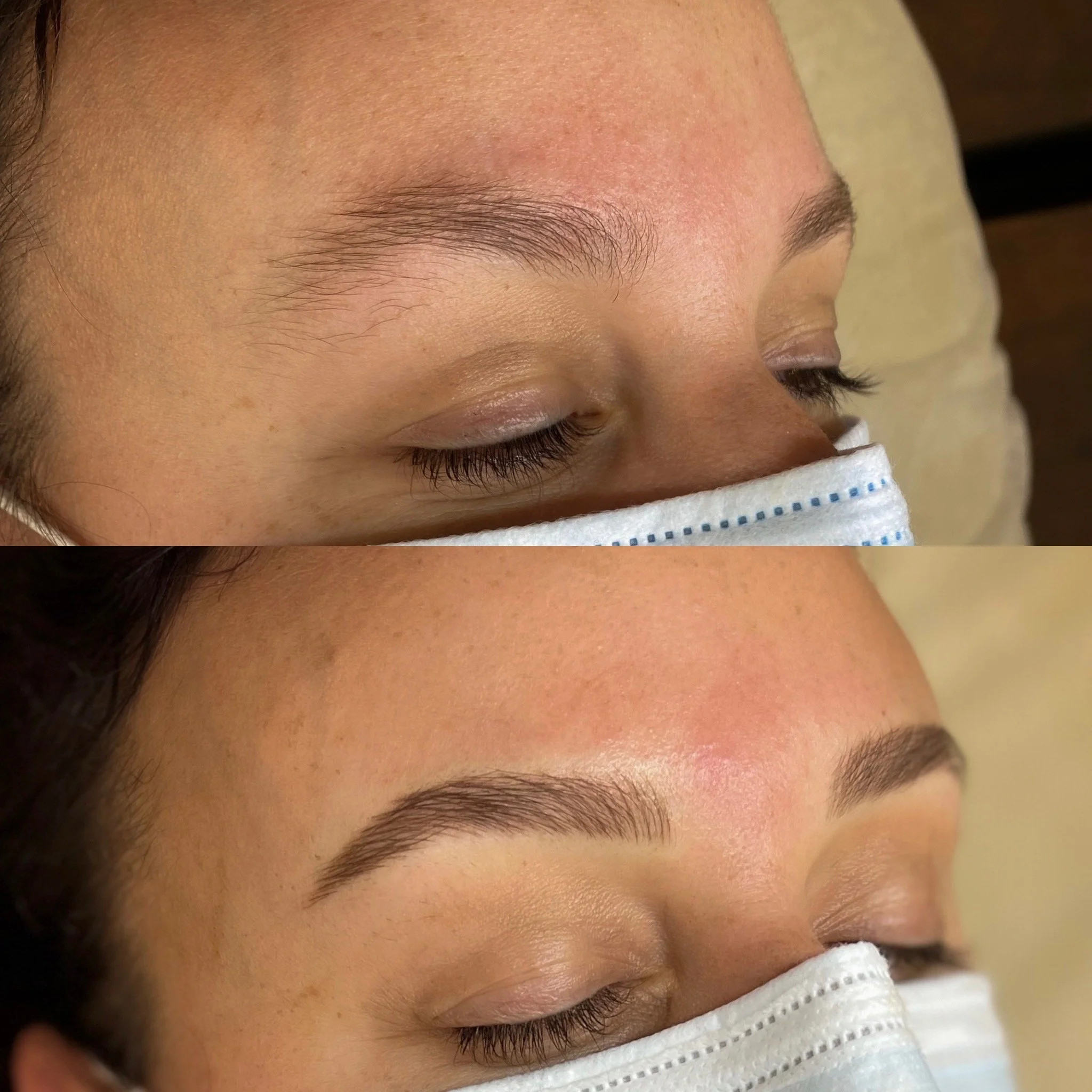 naturally enhance the eyebrows with a machine technique that creates a fuller brow with individual hairstrokes and shading