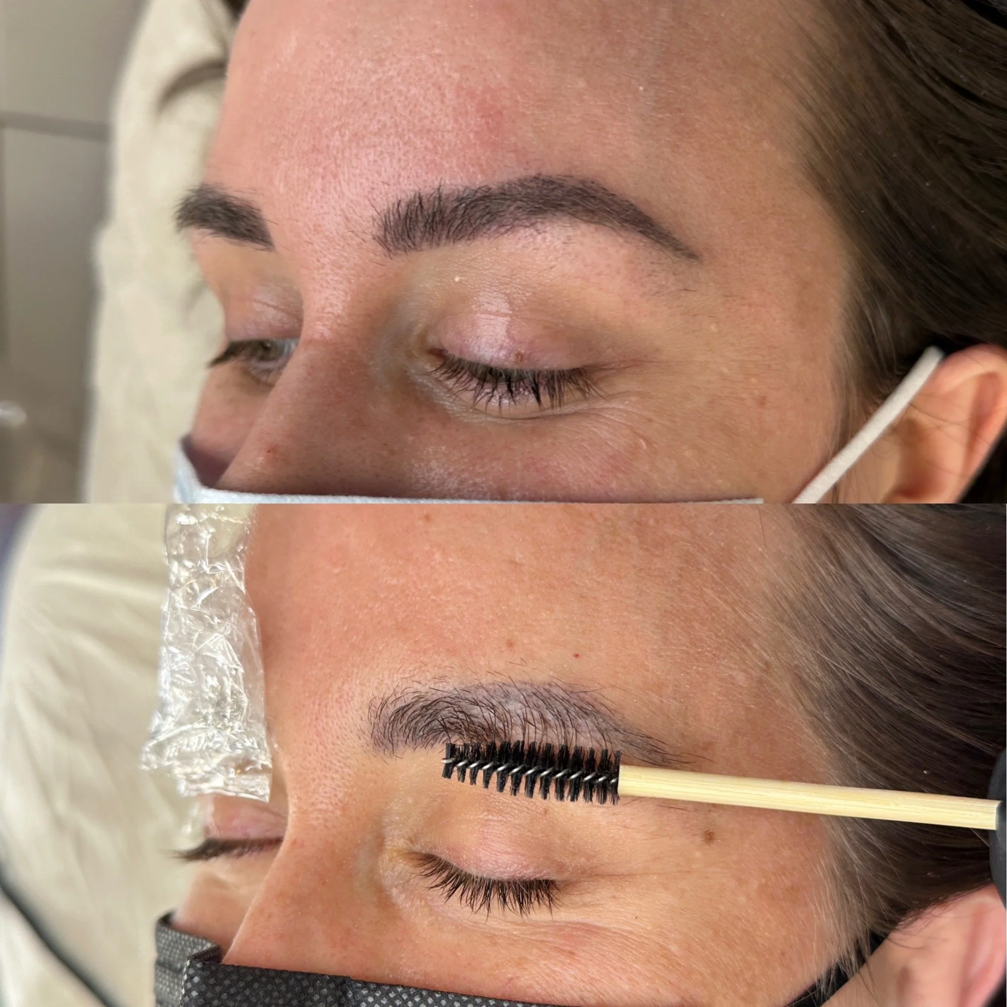 Normal. There is an idea that you leave your appointment looking crazy. There might be some redness, but in general, your brows will just look “done” and slightly shiny because of the aftercare cream.